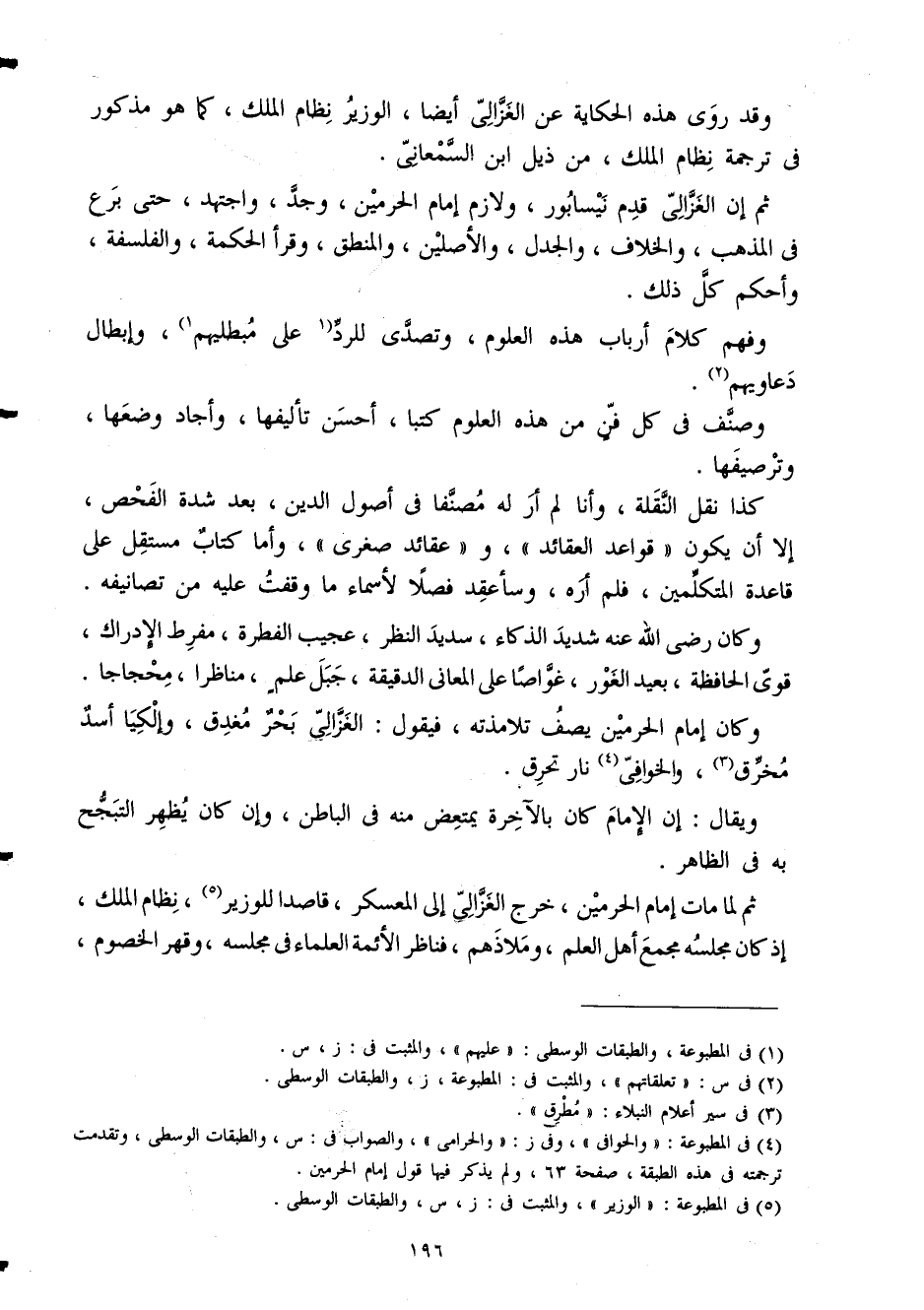 ثمَّ إِن الْغَزالِيّ قدم نيسابور ولازم إِمَام الْحَرَمَيْنِ وجد واجتهد حَتَّى برع فِي الْمَذْهَب وَالْخلاف والجدل والأصلين والمنطق وَقَرَأَ الْحِكْمَة والفلسفة وَأحكم كل ذَلِك