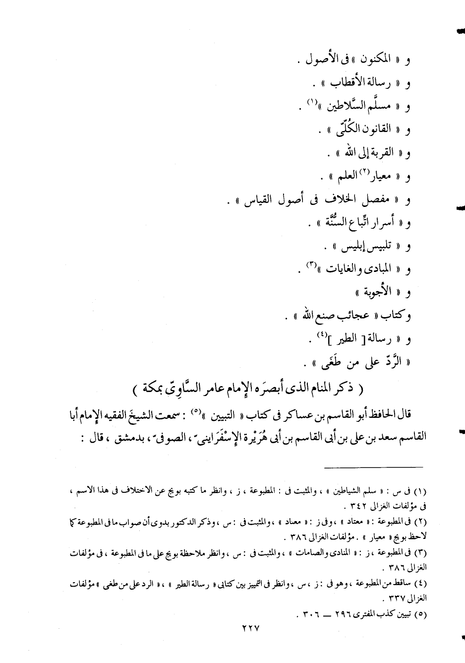 قَالَ الْحَافِظ أَبُو الْقَاسِم بن عَسَاكِر فِي كتاب التَّبْيِين سَمِعت الشَّيْخ الْفَقِيه الإِمَام أَبَا الْقَاسِم سعد بن عَليّ بن أبي الْقَاسِم بن أبي هُرَيْرَة الإسفرايني الصُّوفِي بِدِمَشْق قَالَ