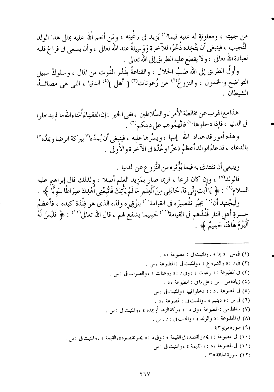 وَهَذِه أُمُور قد هداه الله إِلَيْهَا ويسرها عَلَيْهِ فَيَنْبَغِي أَن يمده ببركة الرِّضَا ويمده بِالدُّعَاءِ فدعاء الْوَالِد أعظم ذخْرا وعدة فِي الْآخِرَة وَالْأولَى