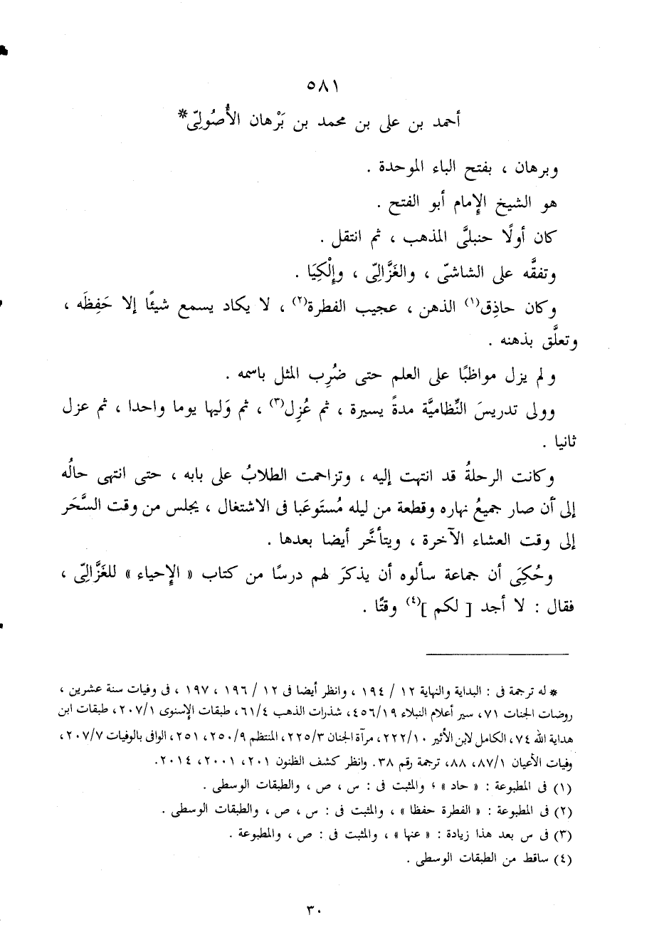 581 - أَحْمد بن عَليّ بن مُحَمَّد بن برهَان الأصولي