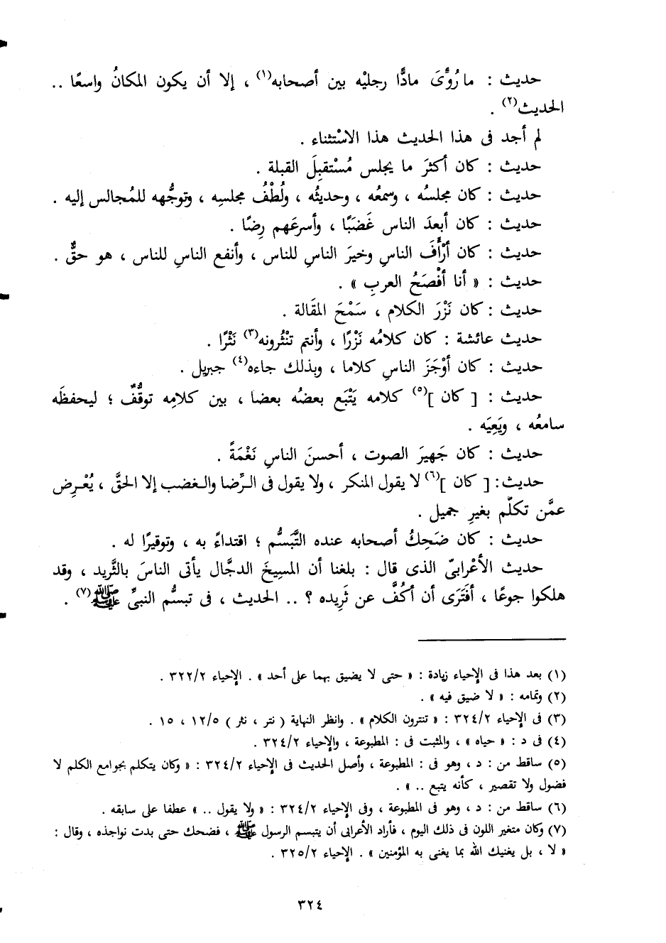 حَدِيث مَا رؤى مَادًّا رجلَيْهِ بَين أَصْحَابه إِلَّا أَن يكون الْمَكَان وَاسِعًا. . الحَدِيث