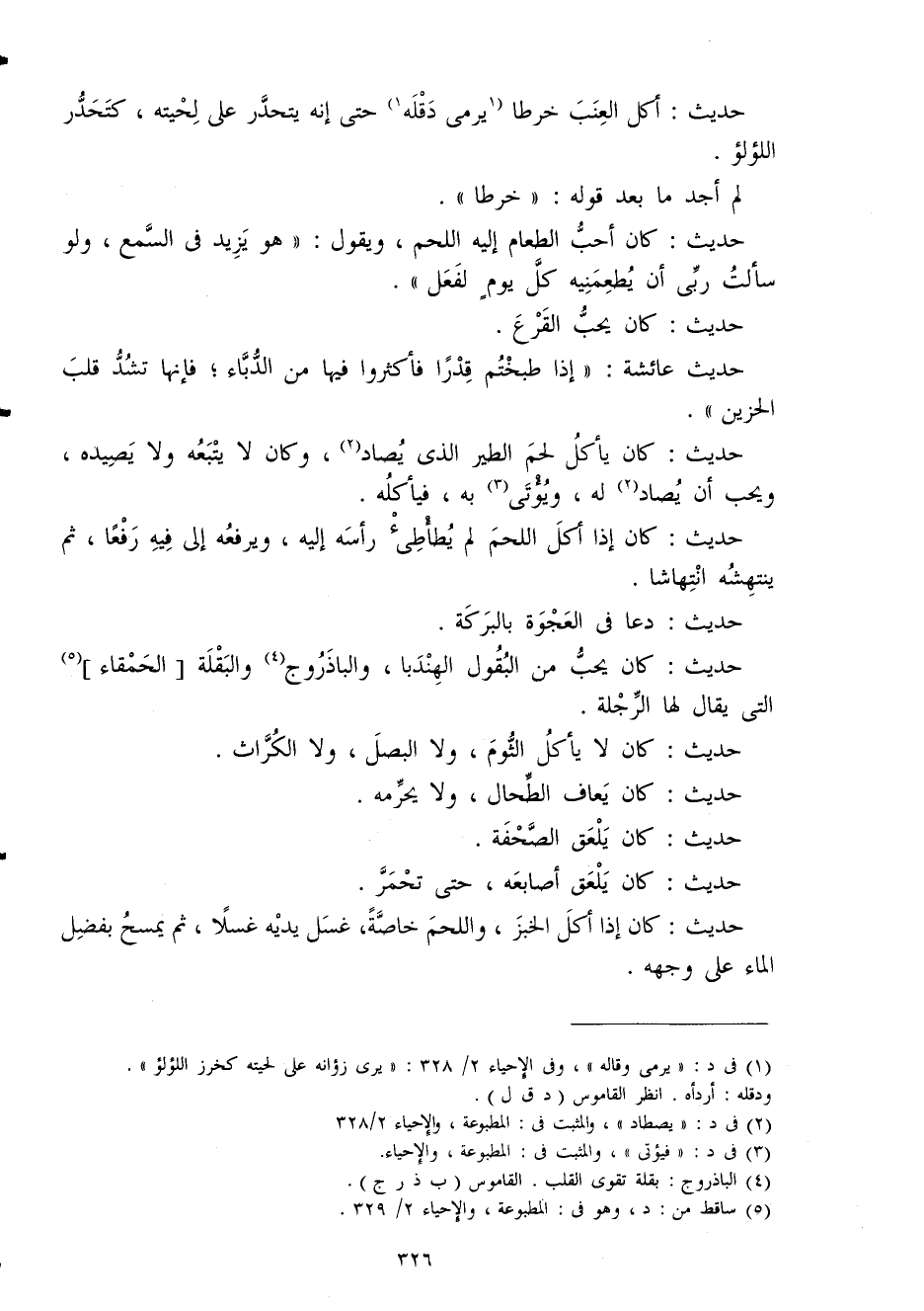 حَدِيث كَانَ يحب من الْبُقُول الهندبا والباذروج والبقلة الحمقاء الَّتِي يُقَال لَهَا الرجلة