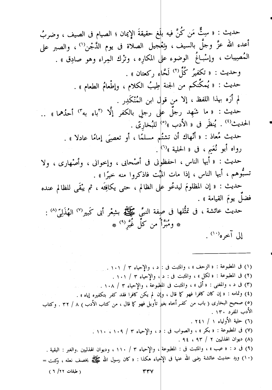حَدِيث عَائِشَة فِي تمثلها فِي صفة النَّبِي صلى الله عَلَيْهِ وَسلم بِشعر أبي كَبِير الْهُذلِيّ ومبرأ من كل غبر