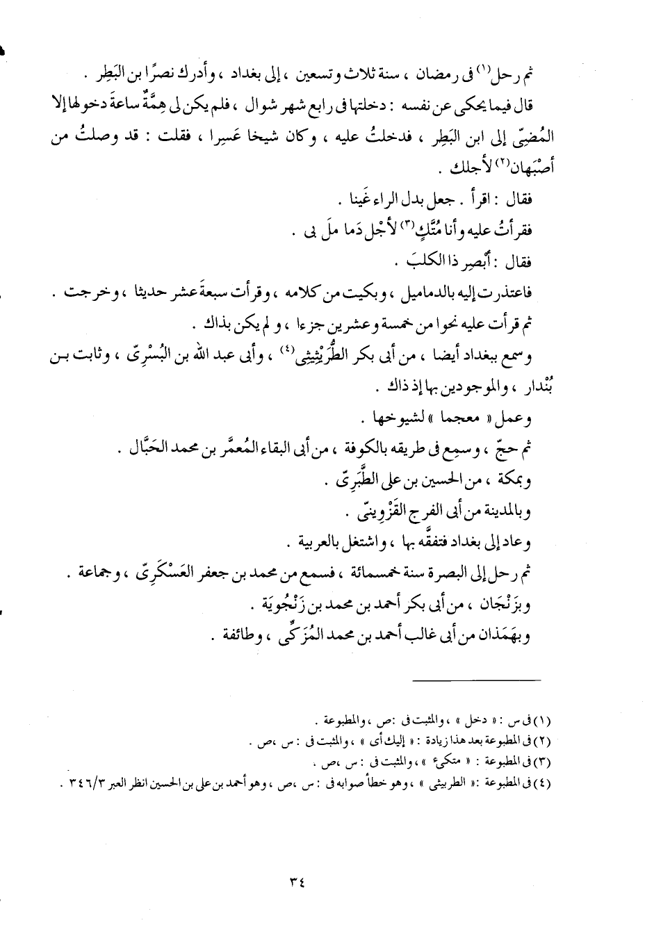 ثمَّ رَحل فِي رَمَضَان سنة ثَلَاث وَتِسْعين إِلَى بَغْدَاد وَأدْركَ نصرا ابْن البطر