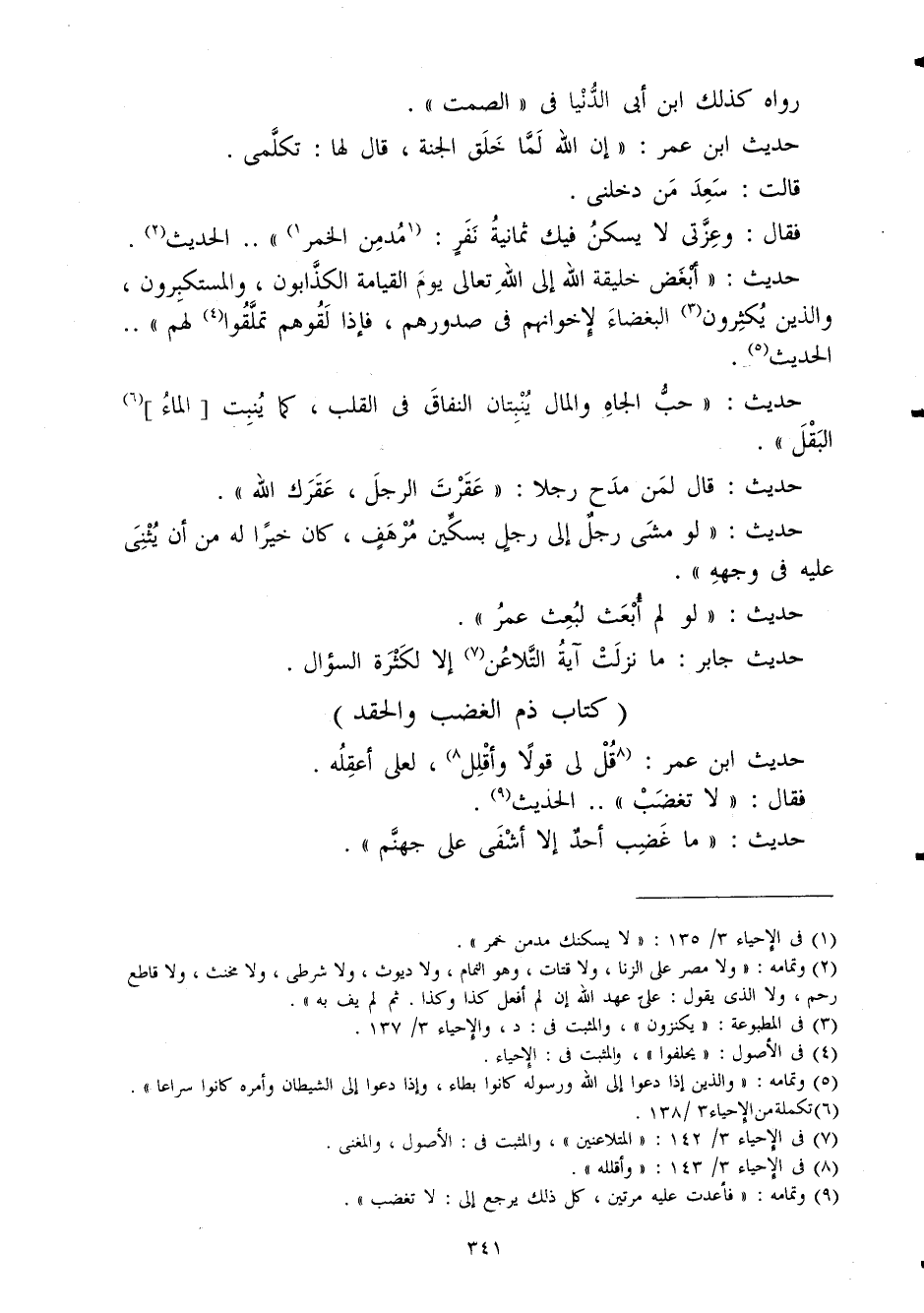 حَدِيث جَابر مَا نزلت آيَة التلاعن إِلَّا لِكَثْرَة السُّؤَال = كتاب ذمّ الْغَضَب والحقد =