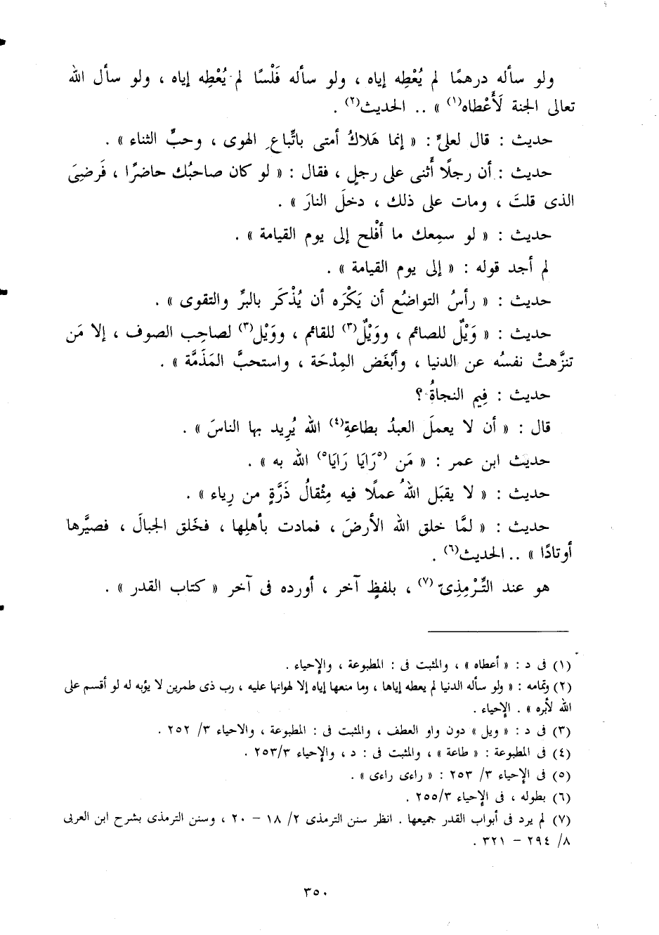 حَدِيث قَالَ لعَلي إِنَّمَا هَلَاك أمتِي بِاتِّبَاع الْهوى وَحب الثَّنَاء