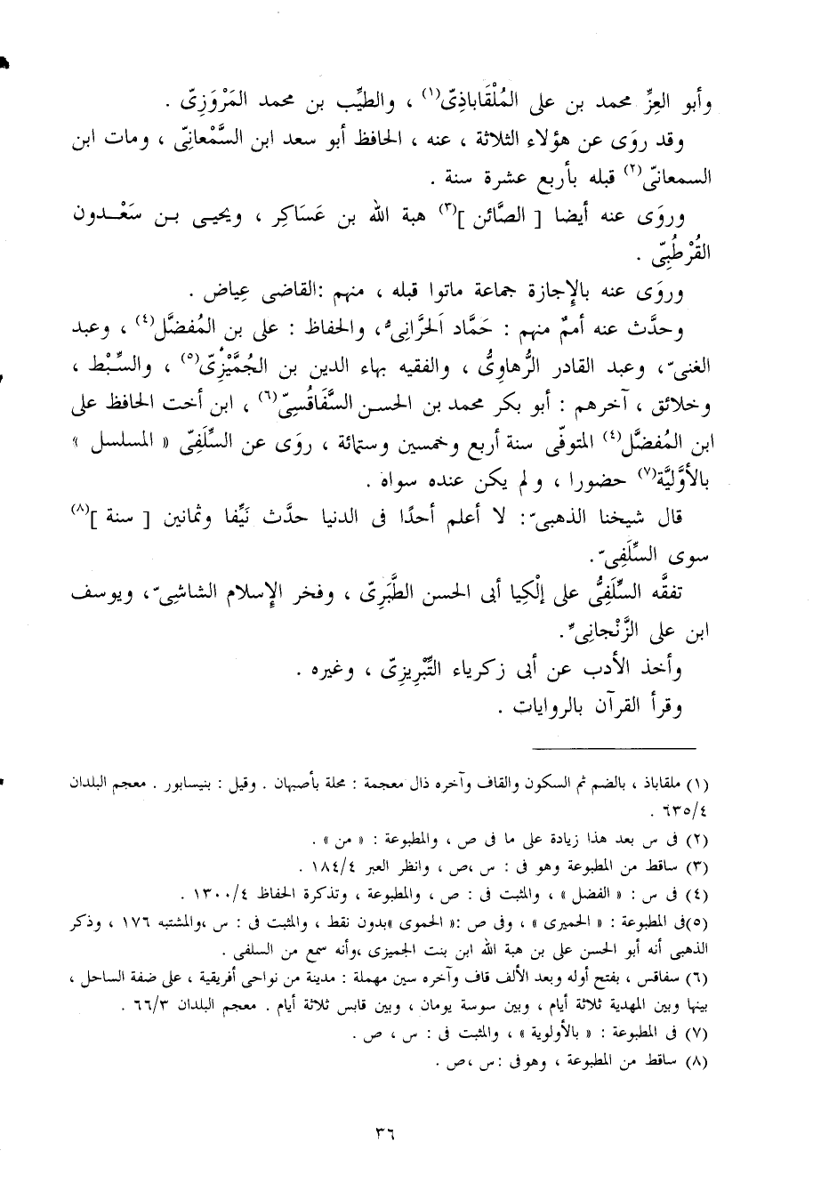 تفقه السلَفِي على إِلْكيَا أبي الْحسن الطَّبَرِيّ وفخر الْإِسْلَام الشَّاشِي ويوسف ابْن عَليّ الزنجاني