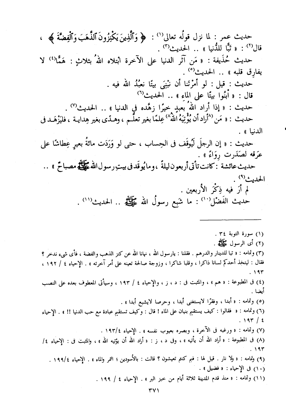 حَدِيث عمر لما نزل قَوْله تَعَالَى {وَالَّذين يكنزون الذَّهَب وَالْفِضَّة} قَالَ تَبًّا للدنيا ... الحَدِيث