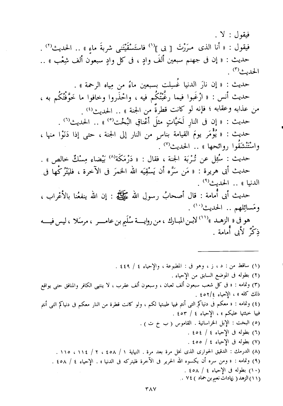 حَدِيث إِن فِي النَّار لحيات مثل أَعْنَاق البخت. . الحَدِيث