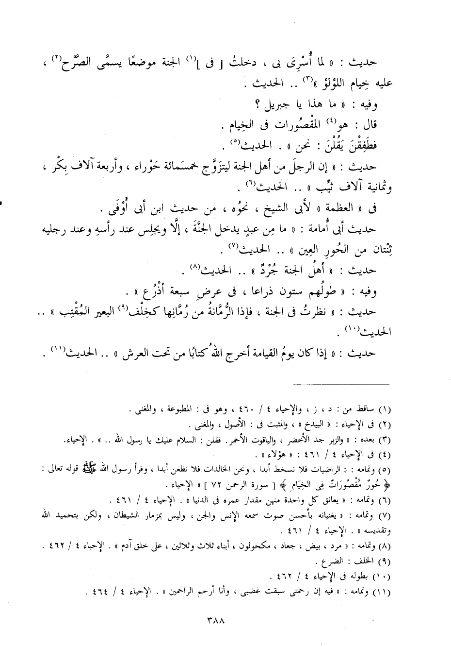 حَدِيث إِن الرجل من أهل الْجنَّة ليتزوج خَمْسمِائَة حوراء وَأَرْبَعَة آلَاف بكر وَثَمَانِية الآف ثيب. . الحَدِيث