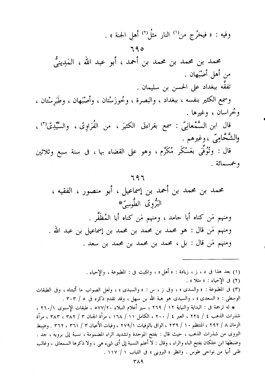 696 - مُحَمَّد بن مُحَمَّد بن أَحْمد بن إِسْمَاعِيل أَبُو مَنْصُور الْفَقِيه البروي الطوسي وَمِنْهُم من كناه أَبَا حَامِد وَمِنْهُم من كناه أَبَا المظفر