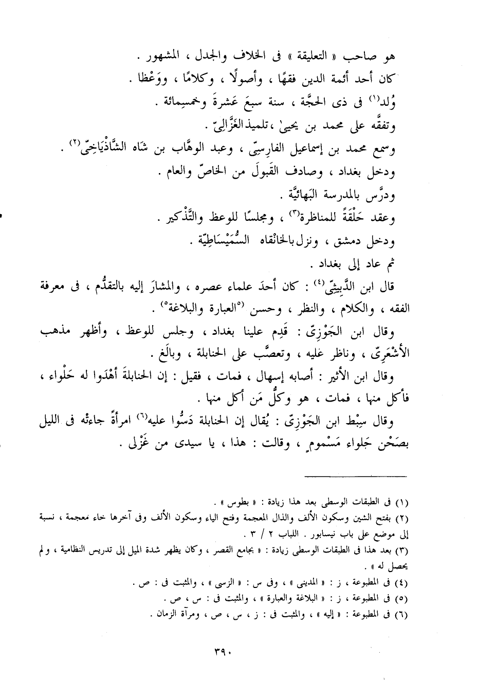 وَقَالَ ابْن الْجَوْزِيّ قدم علينا بَغْدَاد وَجلسَ للوعظ وَأظْهر مَذْهَب الْأَشْعَرِيّ وناظر عَلَيْهِ وتعصب على الْحَنَابِلَة وَبَالغ