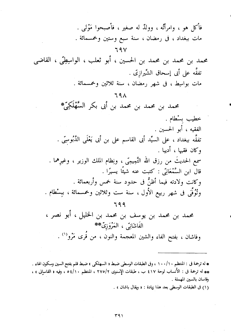 699 - مُحَمَّد ين مُحَمَّد بن يُوسُف بن مُحَمَّد بن الْخَلِيل أَبُو نصر الفاشاني الْمروزِي