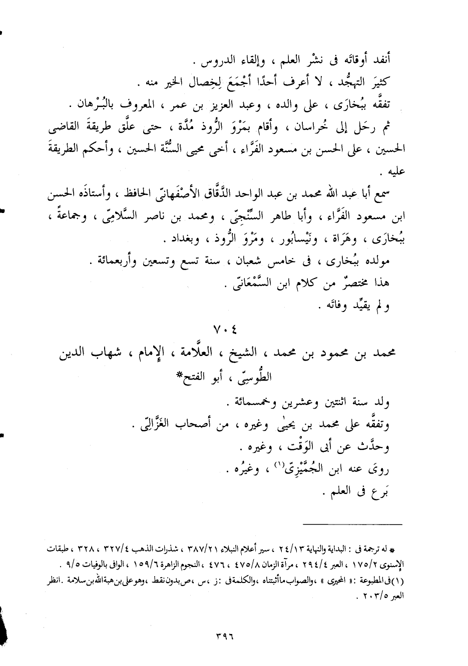 704 - مُحَمَّد بن مَحْمُود بن مُحَمَّد الشَّيْخ الْعَلامَة الإِمَام شهَاب الدّين الطوسي أَبُو الْفَتْح