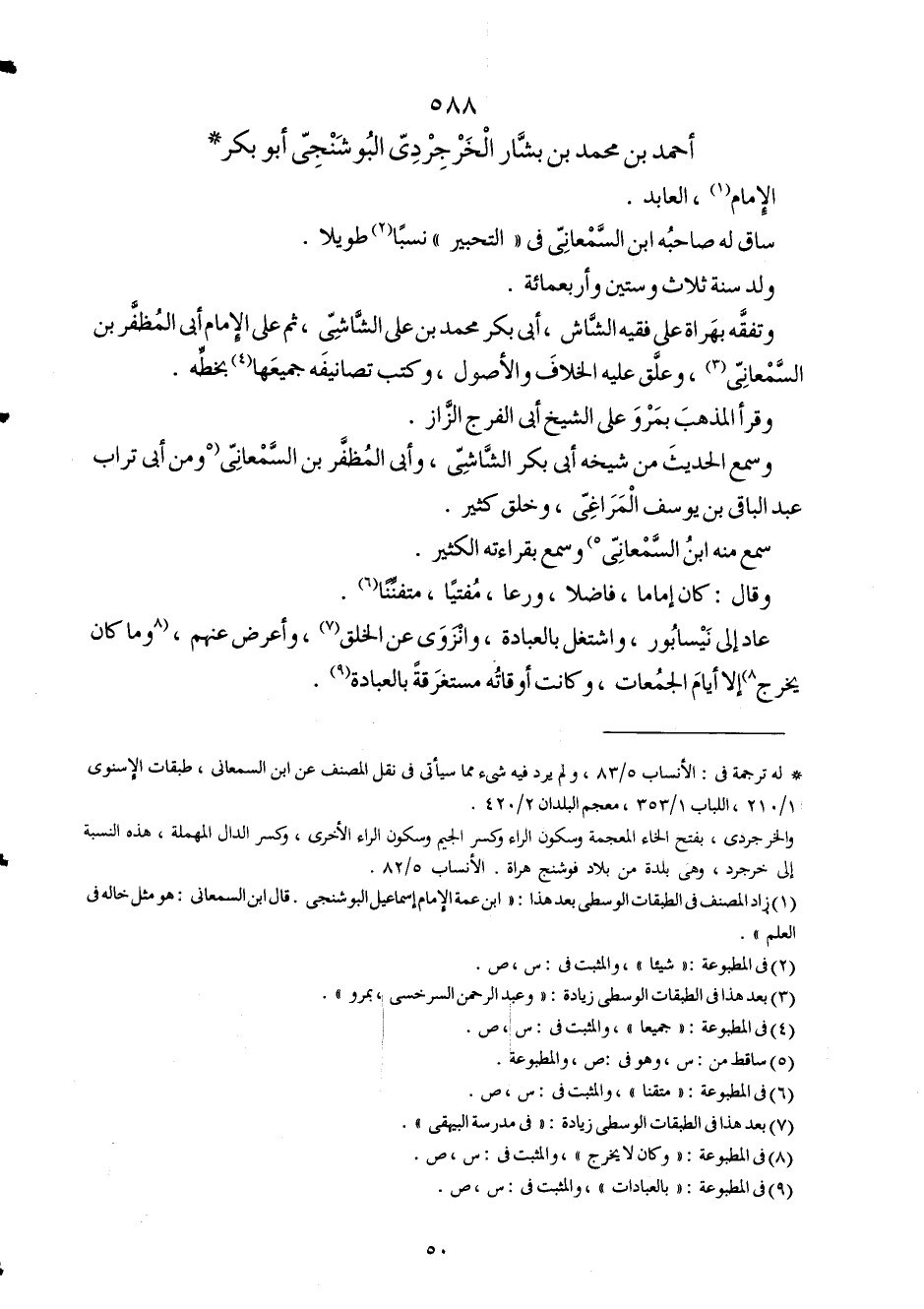 588 - أَحْمد بن مُحَمَّد بن بشار الخرجردى البوشنجي أَبُو بكر الإِمَام العابد