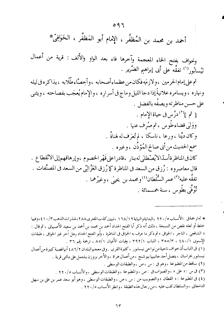596 - أَحْمد بن مُحَمَّد بن المظفر الإِمَام أَبُو المظفر الخوافي