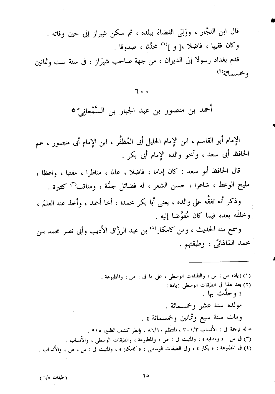 600 - أَحْمد بن مَنْصُور بن عبد الْجَبَّار بن السَّمْعَانِيّ