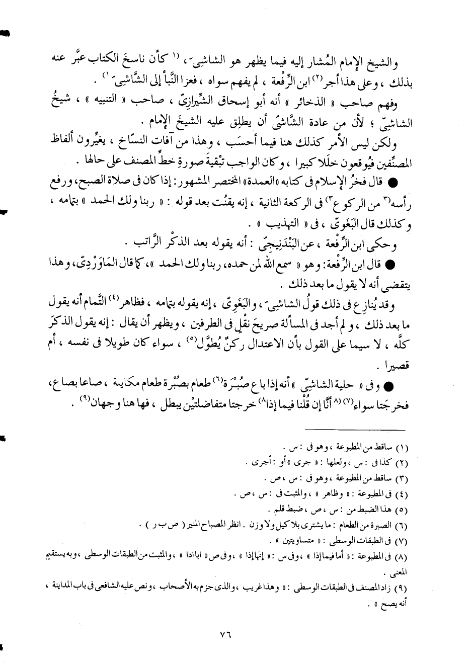 وَالشَّيْخ الإِمَام الْمشَار إِلَيْهِ فيمايظهر هُوَ الشَّاشِي كَأَن نَاسخ الْكتاب عبر عَنهُ بذلك وعَلى هَذَا أجر ابْن الرّفْعَة لم يفهم سواهُ فعزا النبأ إِلَى الشَّاشِي