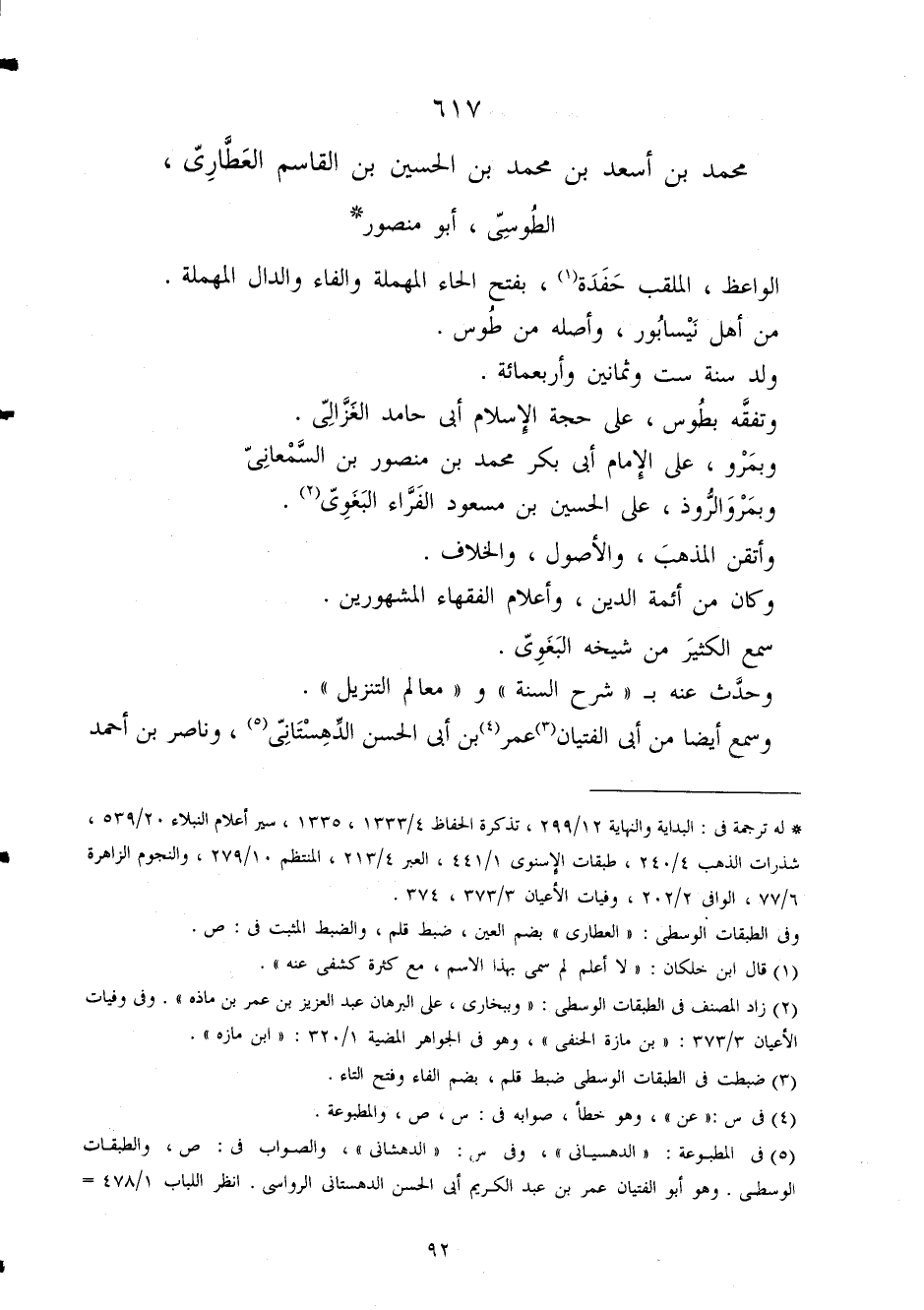 617 - مُحَمَّد بن أسعد بن مُحَمَّد بن الْحُسَيْن بن الْقَاسِم العطاري الطوسي أَبُو مَنْصُور