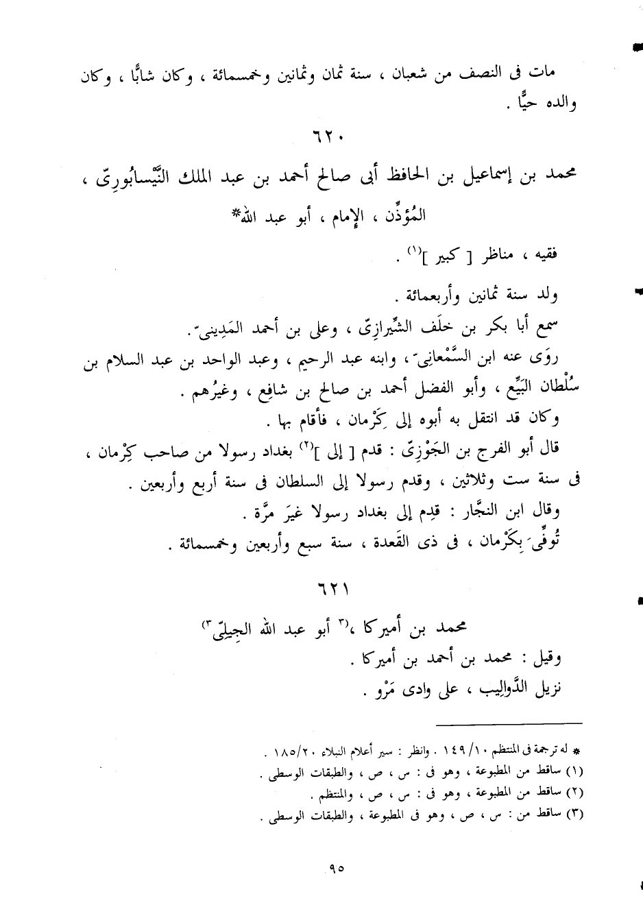 قَالَ أَبُو الْفرج بن الْجَوْزِيّ قدم إِلَى بَغْدَاد رَسُولا من صَاحب كرمان فِي سنة سِتّ وَثَلَاثِينَ وَقدم رَسُولا إِلَى السُّلْطَان فِي سنة أَربع وَأَرْبَعين