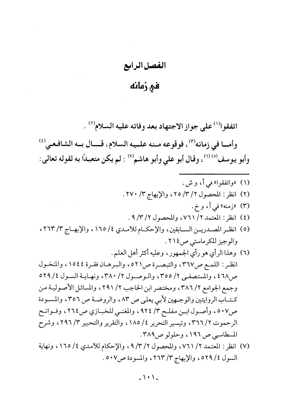 (٧) انظر: المعتمد ٢/ ٧٦١، والمحصول ٢/ ٣/ ٩، والإحكام للآمدي ٤/ ١٦٥، ونهاية السول ٤/ ٥٢٩، والإبهاج ٣/ ٢٦٣، والمسودة ص ٥٠٧.