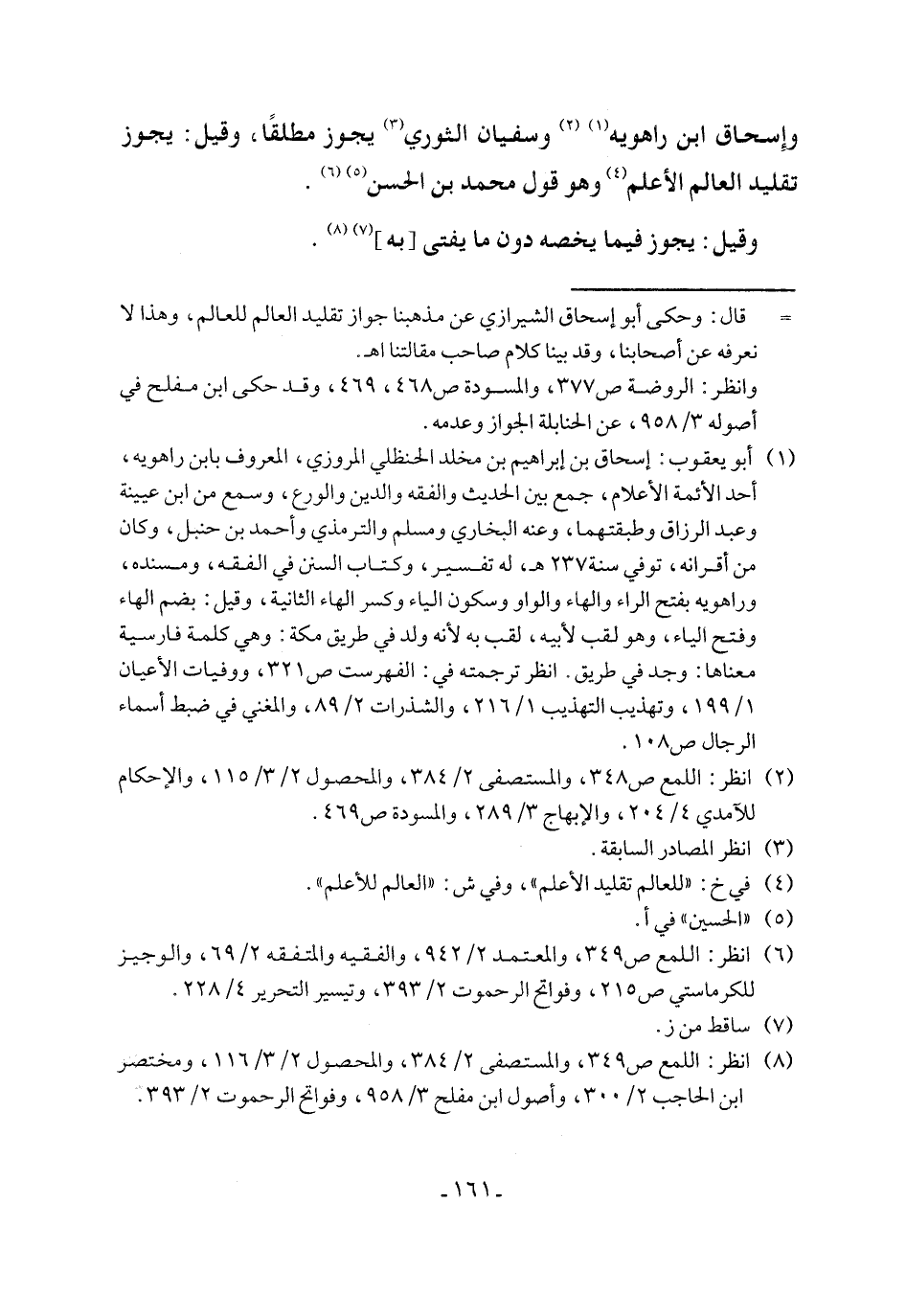 (٨) انظر: اللمع ص ٣٤٩، والمستصفى ٢/ ٣٨٤، والمحصول ٢/ ٣/ ١١٦، ومختصر ابن الحاجب ٢/ ٣٠٠، وأصول ابن مفلح ٣/ ٩٥٨، وفواتح الرحموت ٢/ ٣٩٣.