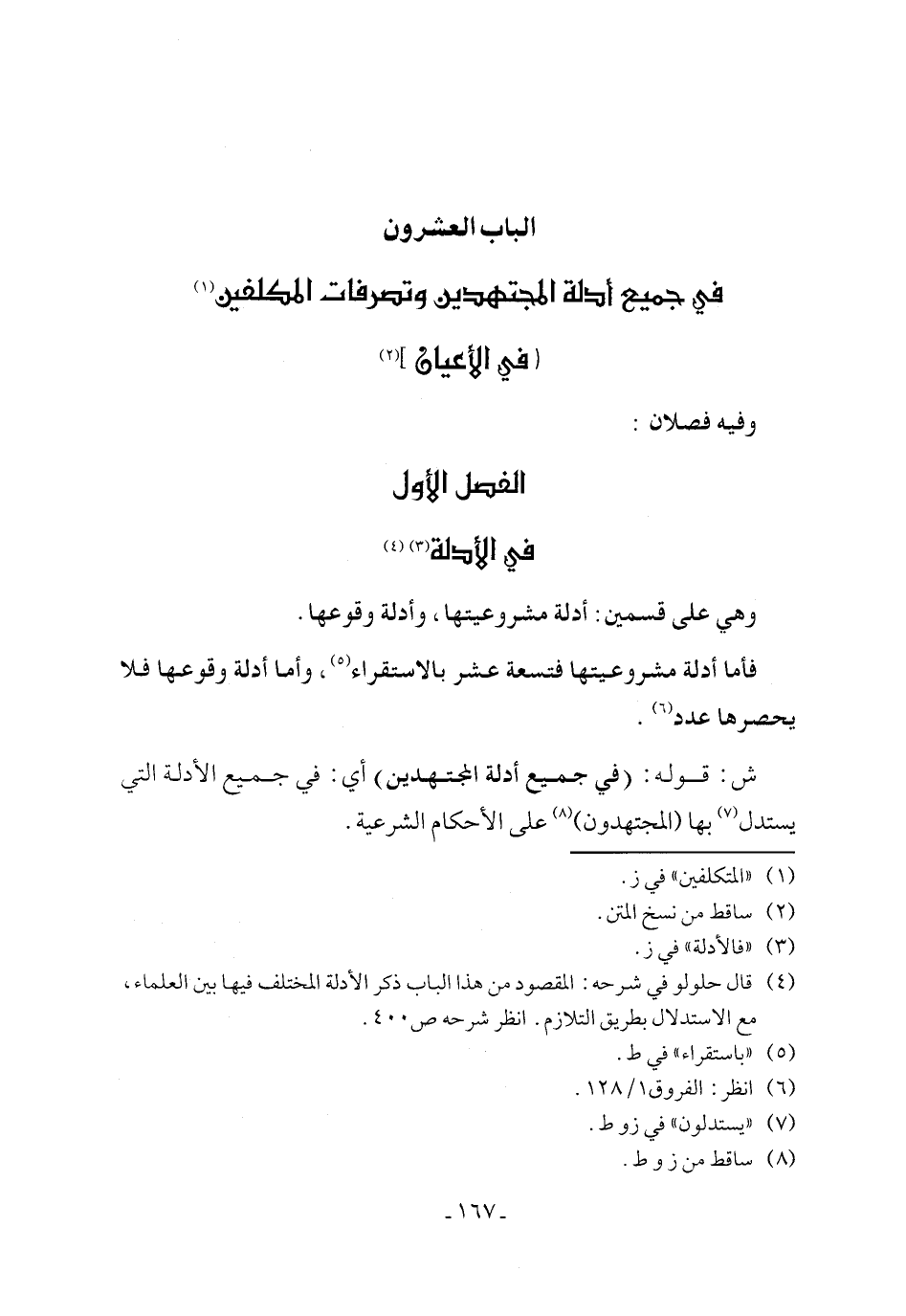 الباب العشرون في جميع أدلة المجتهدين وتصرفات المكلفين (١) [في الأعيان] (٢)