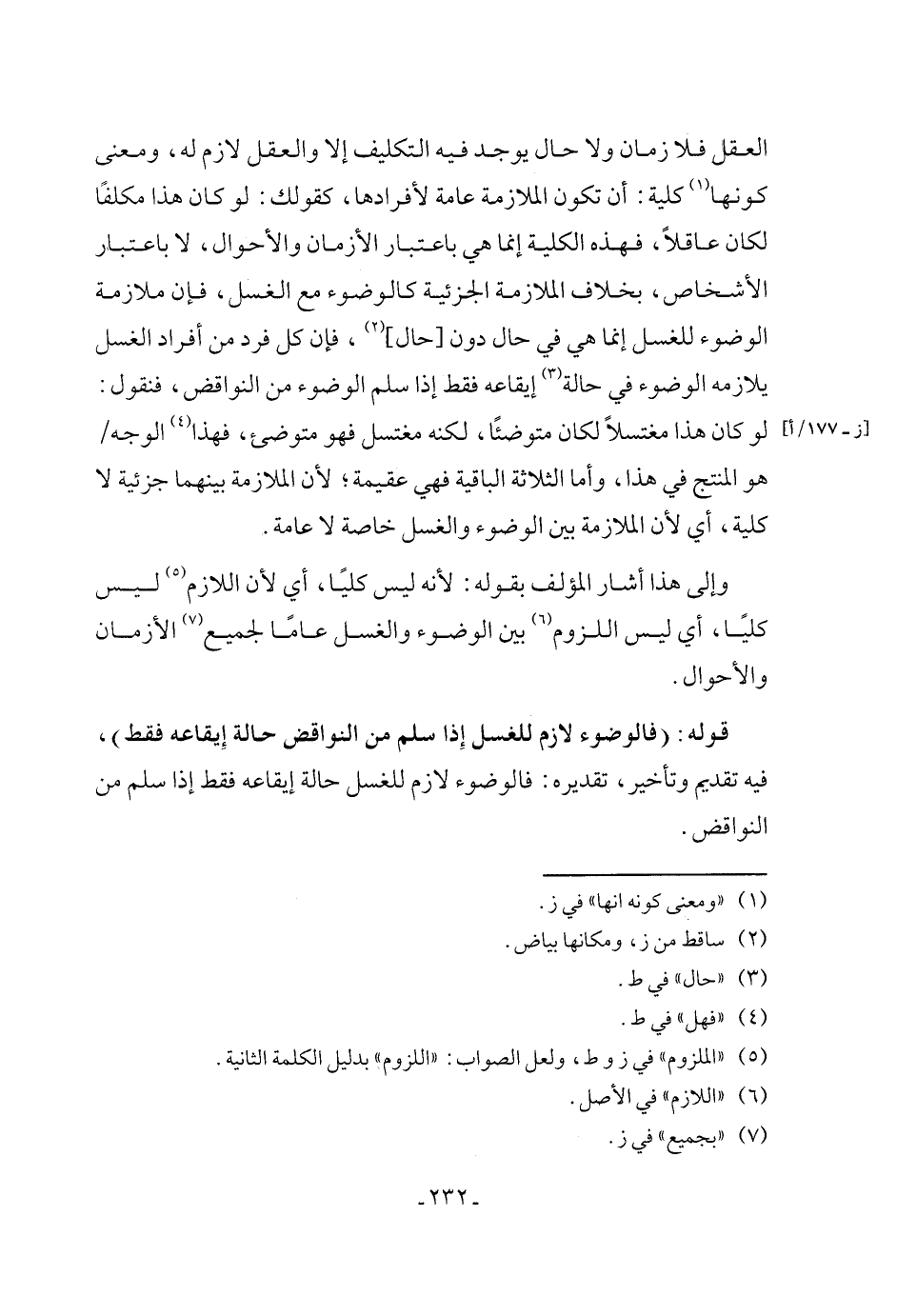 (٥) "الملزوم" في ز وط، ولعل الصواب: "اللزوم" بدليل الكلمة الثانية.