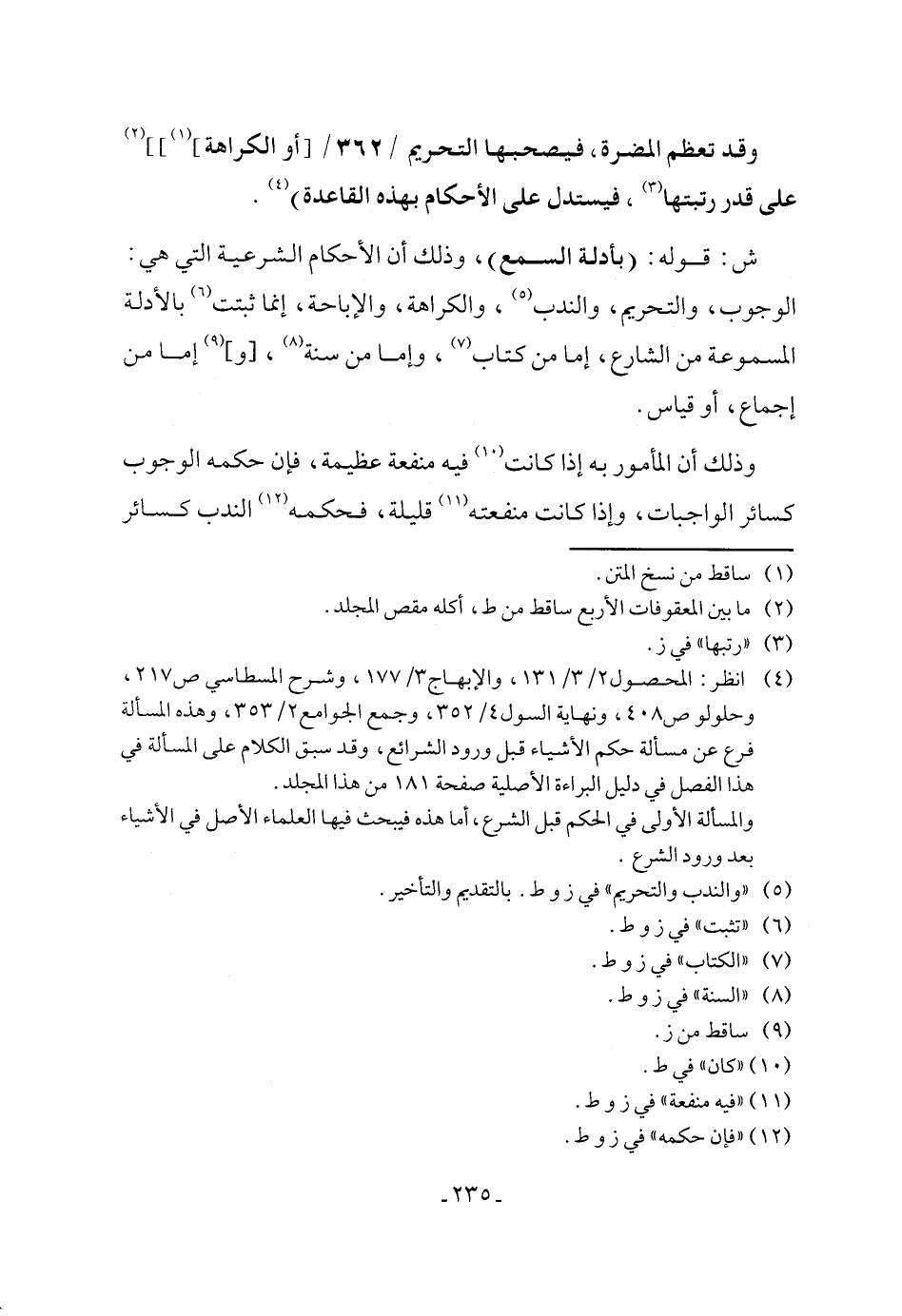 ش: قوله: (بأدلة السمع)، وذلك أن الأحكام الشرعية التي هي: الوجوب، والتحريم، والندب (٥)، والكراهة، والإباحة، إنما ثبتت (٦) بالأدلة المسموعة من الشارع، إما من كتاب (٧)، وإما من سنة (٨)، [و] (٩) إما من إجماع، أو قياس.