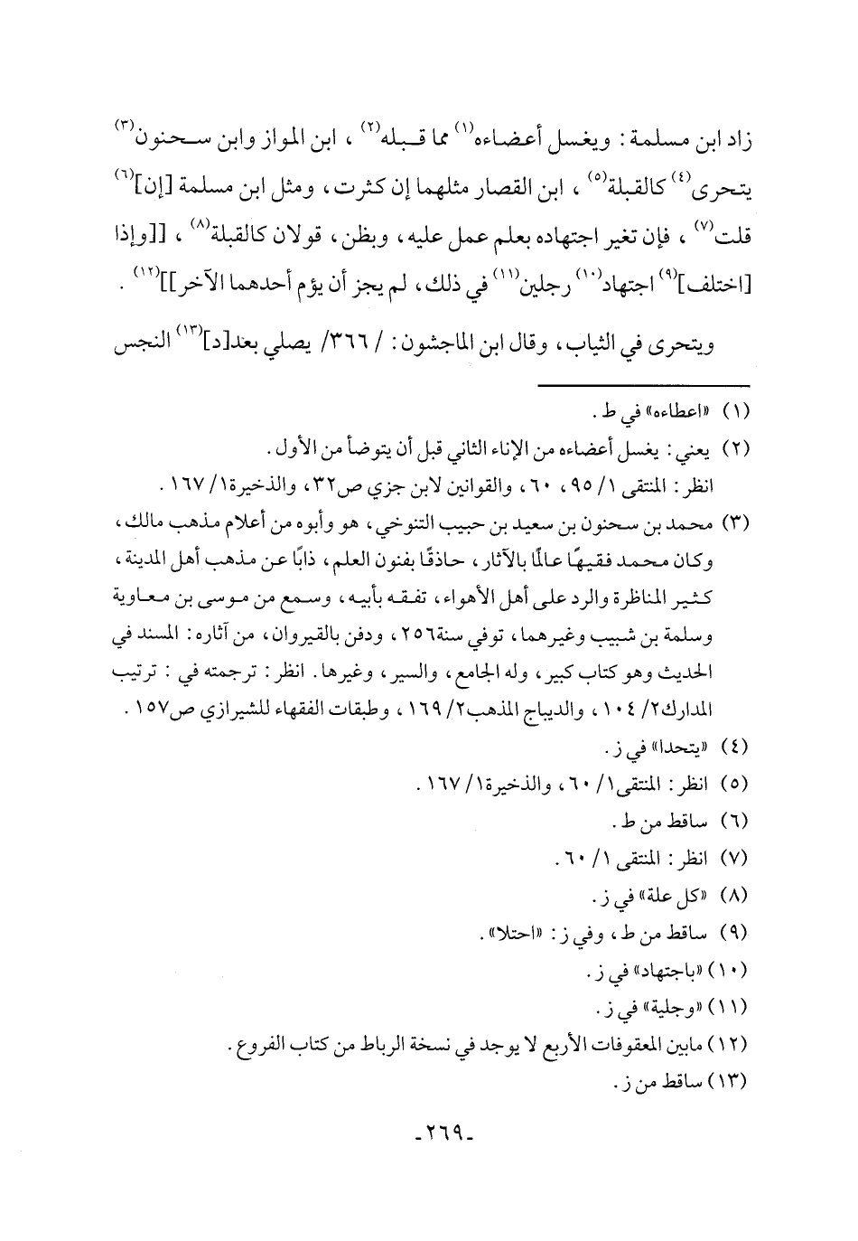 (١٢) ما بين المعقوفات الأربع لا يوجد في نسخة الرباط من كتاب الفروع.