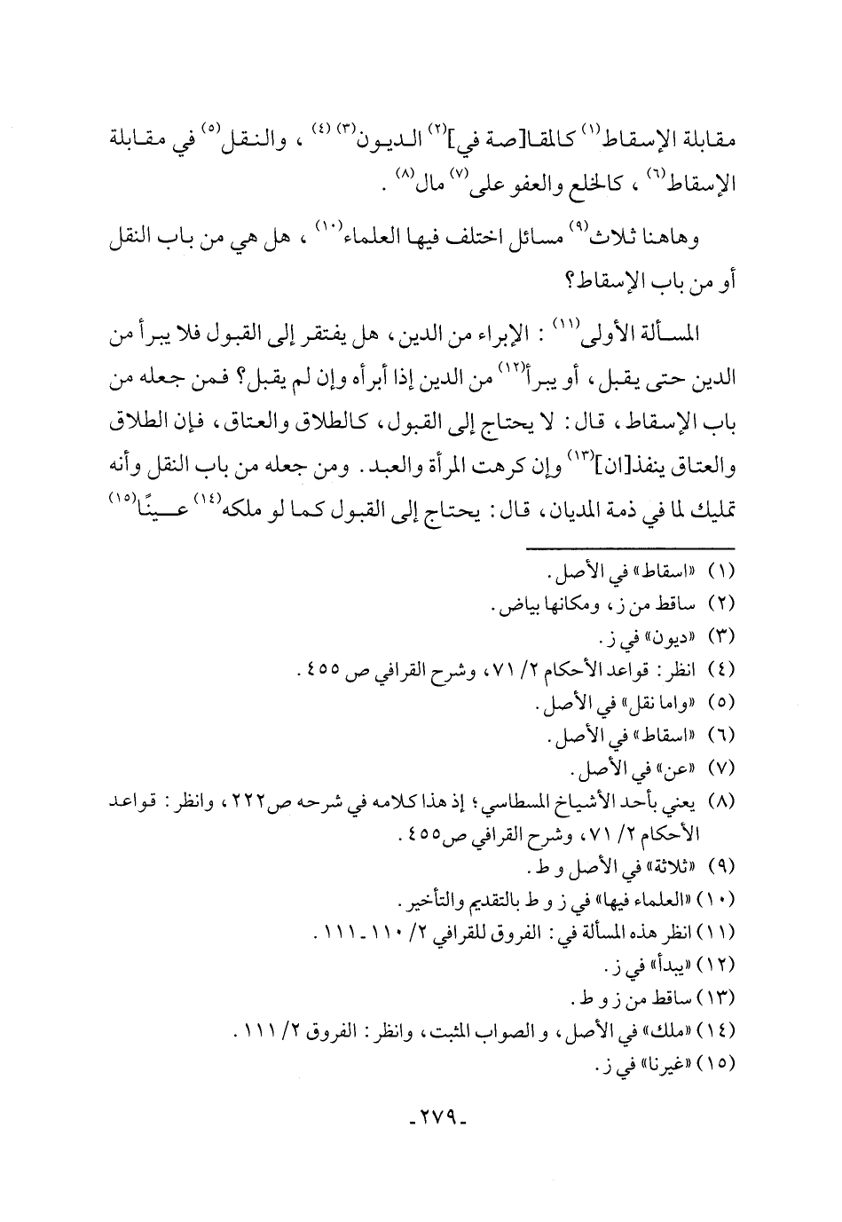 وها هنا ثلاث (٩) مسائل اختلف فيها العلماء (١٠)، هل هي من باب النقل أو من باب الإسقاط؟