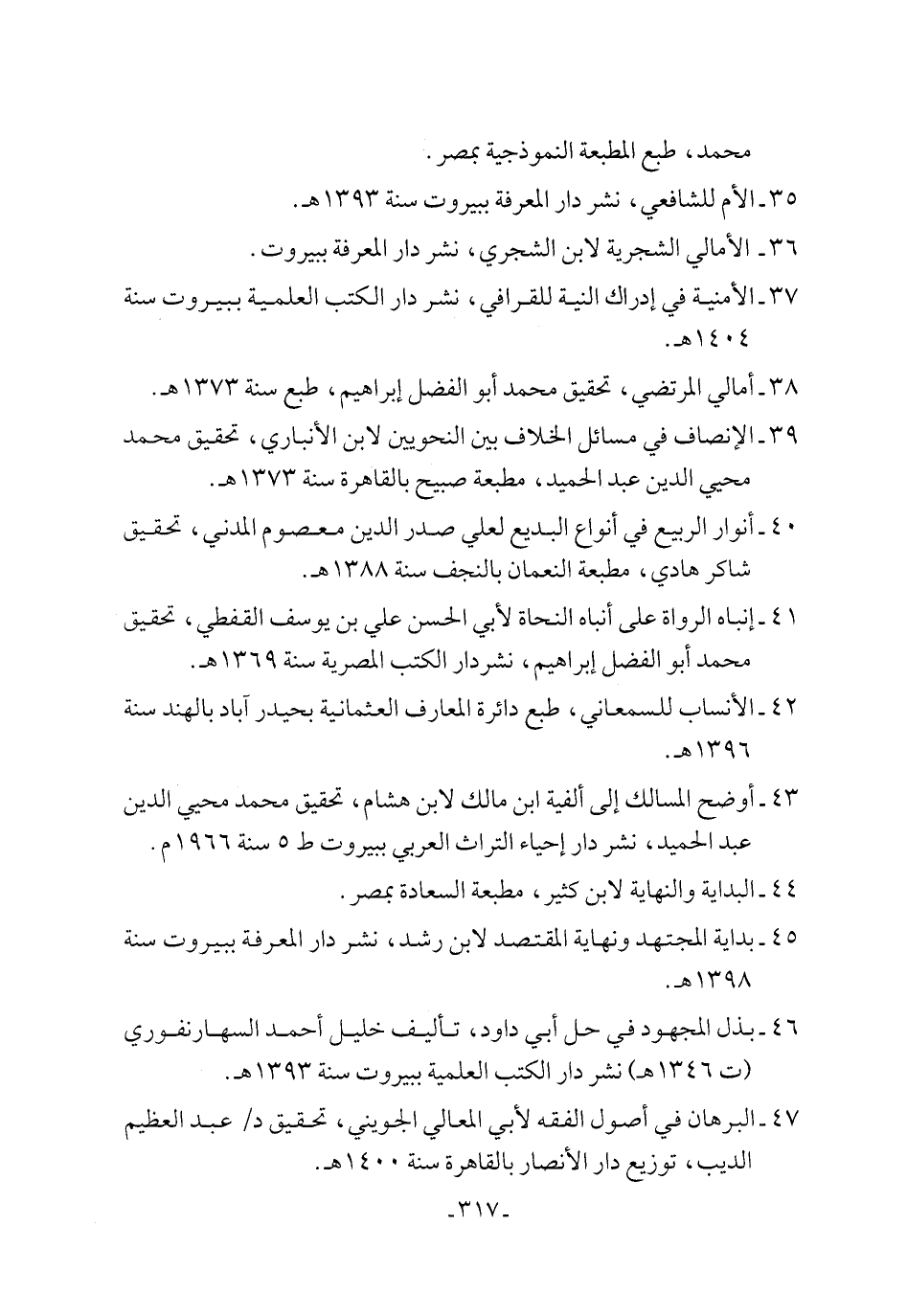 ٤٥ - بداية المجتهد ونهاية المقتصد لابن رشد، نشر دار المعرفة ببيروت سنة ١٣٩٨ هـ.
