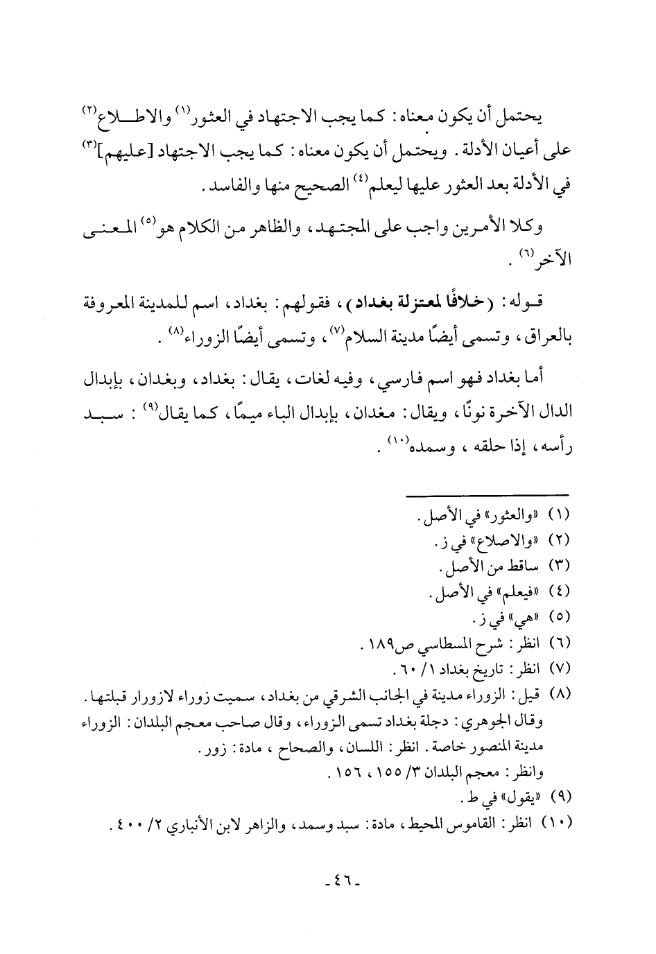 قوله: (خلافًا لمعتزلة بغداد)، فقولهم: بغداد، اسم للمدينة المعروفة بالعراق، وتسمى أيضًا مدينة السلام (٧)، وتسمى أيضًا الزوراء (٨).