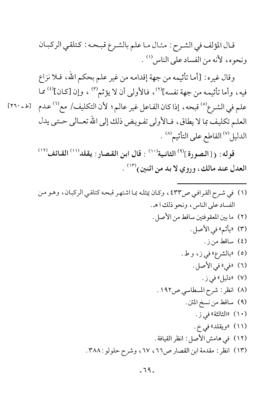 (١٣) انظر: مقدمة ابن القصار ص ٦٦، ٦٧، وشرح حلولو: ٣٨٨.