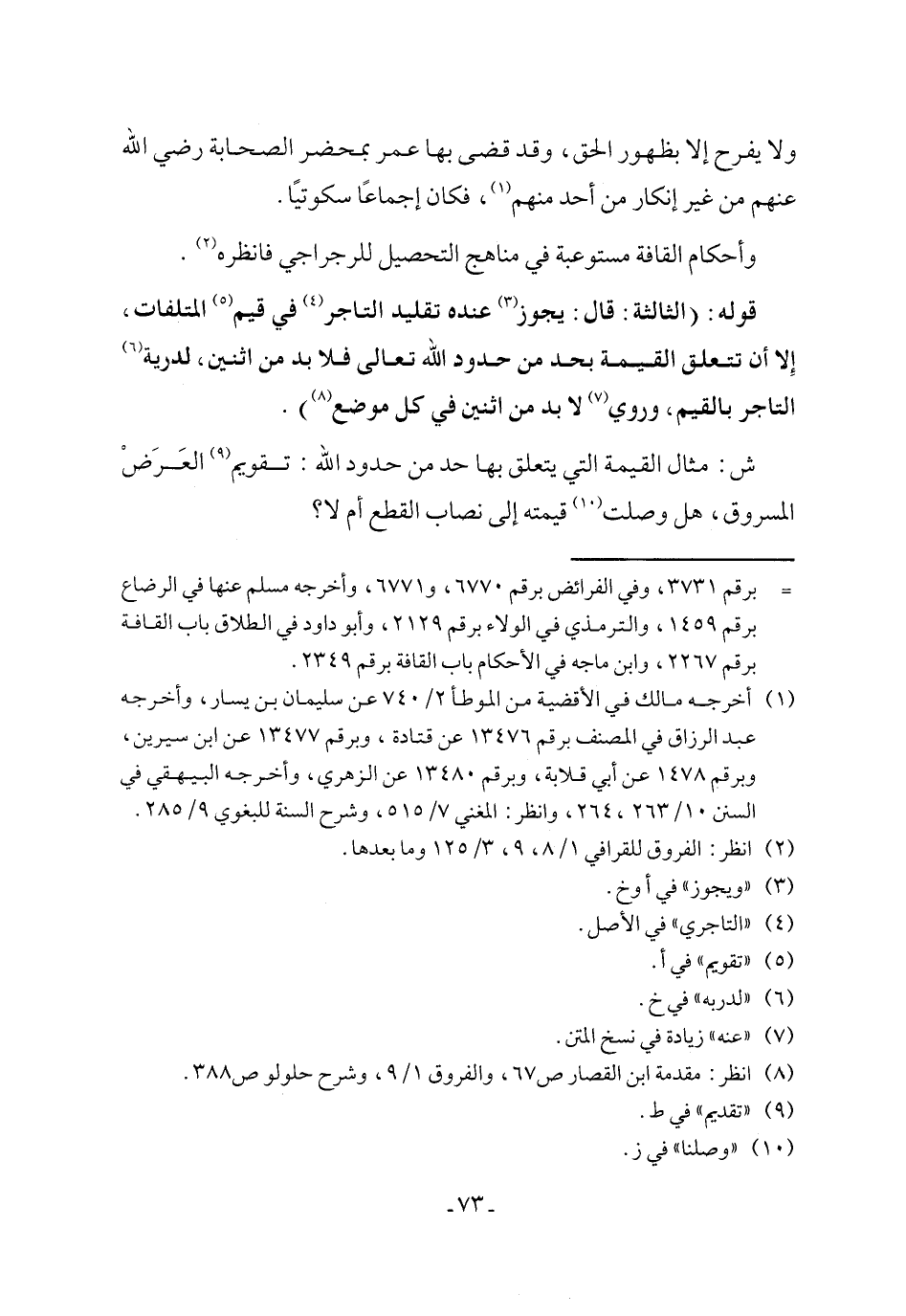 (٨) انظر: مقدمة ابن القصار ص ٦٧، والفروق ١/ ٩، وشرح حلولو ص ٣٨٨.