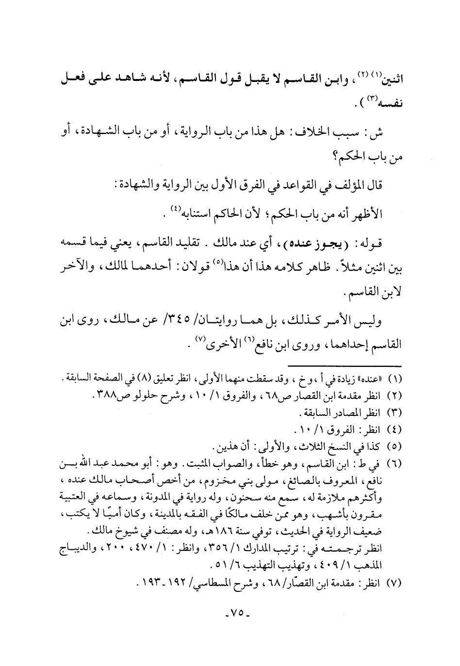 (٧) انظر: مقدمة ابن القصّار/ ٦٨، وشرح المسطاسي / ١٩٢ - ١٩٣.