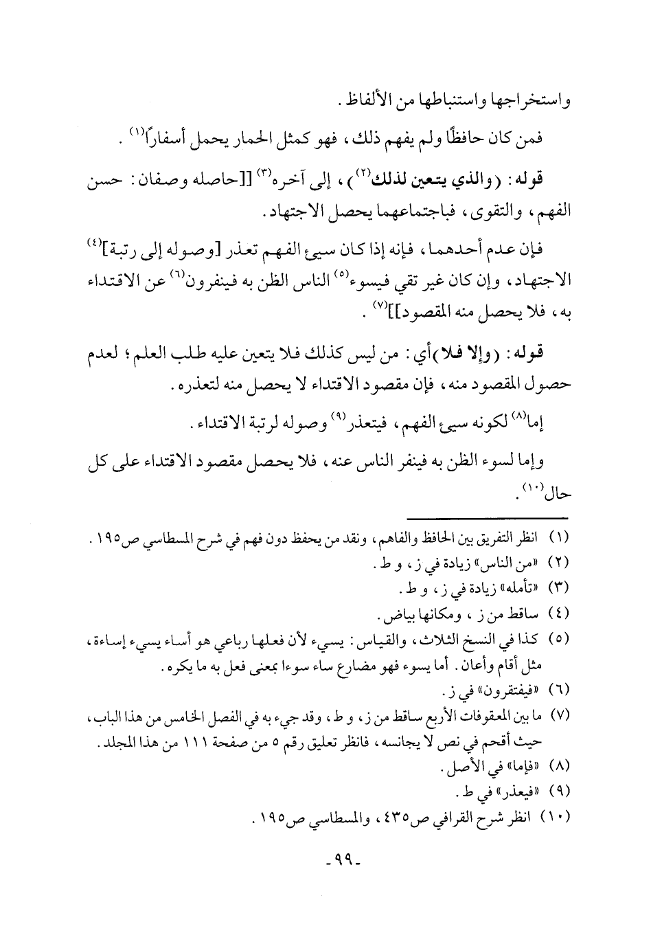 (١٠) انظر شرح القرافي ص ٤٣٥، والمسطاسي ص ١٩٥.