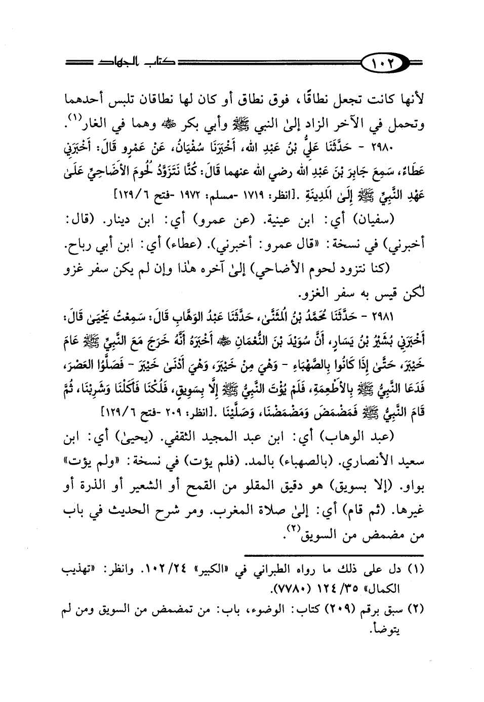 2980 - حَدَّثَنَا عَلِيُّ بْنُ عَبْدِ اللَّهِ، أَخْبَرَنَا سُفْيَانُ، عَنْ عَمْرٍو، قَال: أَخْبَرَنِي عَطَاءٌ، سَمِعَ جَابِرَ بْنَ عَبْدِ اللَّهِ رَضِيَ اللَّهُ عَنْهُمَا، قَال: "كُنَّا نَتَزَوَّدُ لُحُومَ الأَضَاحِيِّ عَلَى عَهْدِ النَّبِيِّ صَلَّى اللهُ عَلَيْهِ وَسَلَّمَ إِلَى المَدِينَةِ".