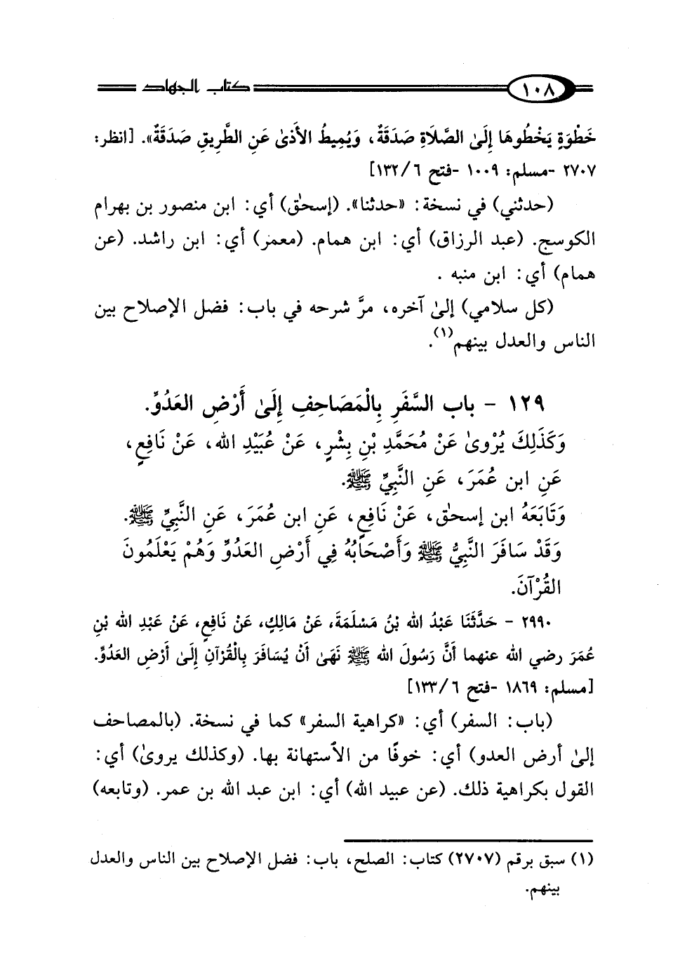 129 - بَابُ السَّفَرِ بِالْمَصَاحِفِ إِلَى أَرْضِ العَدُوِّ