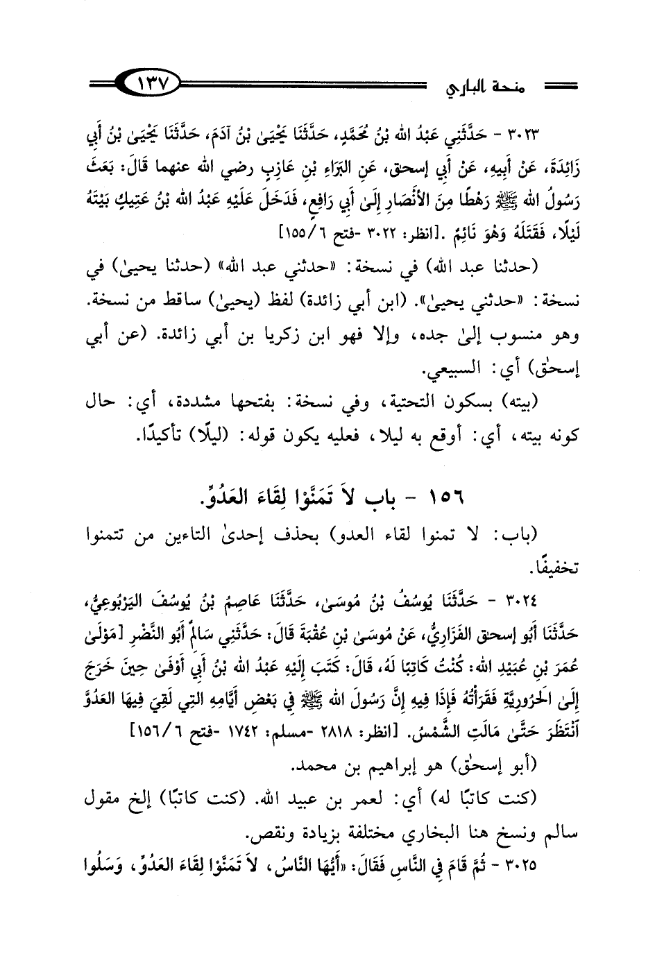 156 - بَابٌ: لَا تَمَنَّوْا لِقَاءَ العَدُوِّ