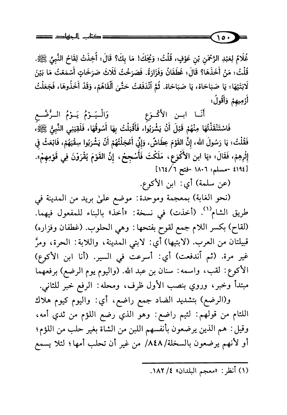 فَاسْتَنْقَذْتُهَا مِنْهُمْ قَبْلَ أَنْ يَشْرَبُوا، فَأَقْبَلْتُ بِهَا أَسُوقُهَا، فَلَقِيَنِي النَّبِيُّ صَلَّى اللهُ عَلَيْهِ وَسَلَّمَ، فَقُلْتُ: يَا رَسُولَ اللَّهِ إِنَّ القَوْمَ عِطَاشٌ، وَإِنِّي أَعْجَلْتُهُمْ أَنْ يَشْرَبُوا سِقْيَهُمْ، فَابْعَثْ فِي إِثْرِهِمْ، فَقَال: "يَا ابْنَ الأَكْوَعِ: مَلَكْتَ، فَأَسْجِحْ إِنَّ القَوْمَ يُقْرَوْنَ فِي قَوْمِهِمْ".