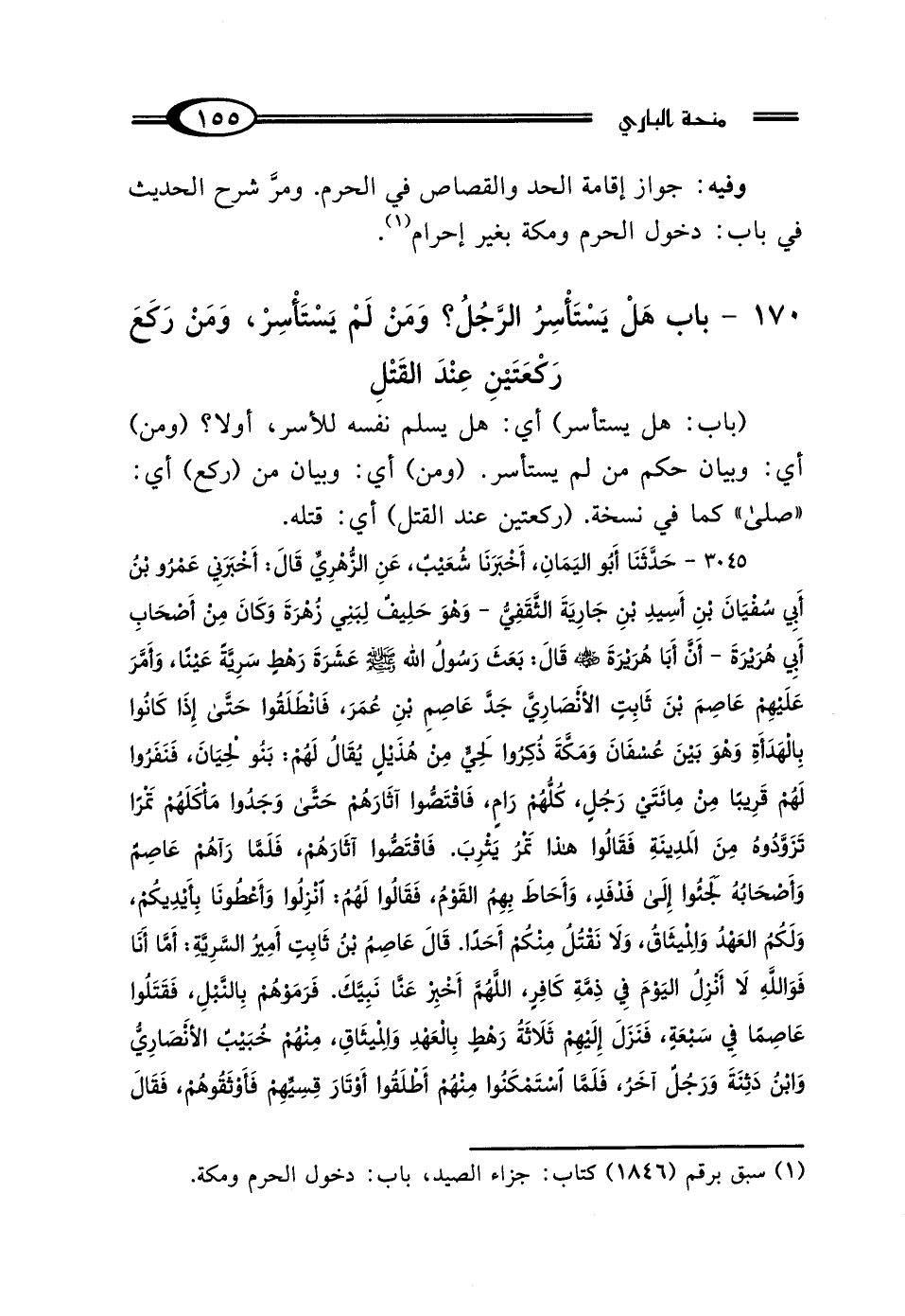 170 - بَابٌ: هَلْ يَسْتَأْسِرُ الرَّجُلُ؟ وَمَنْ لَمْ يَسْتَأْسِرْ، وَمَنْ رَكَعَ رَكْعَتَيْنِ عِنْدَ القَتْلِ