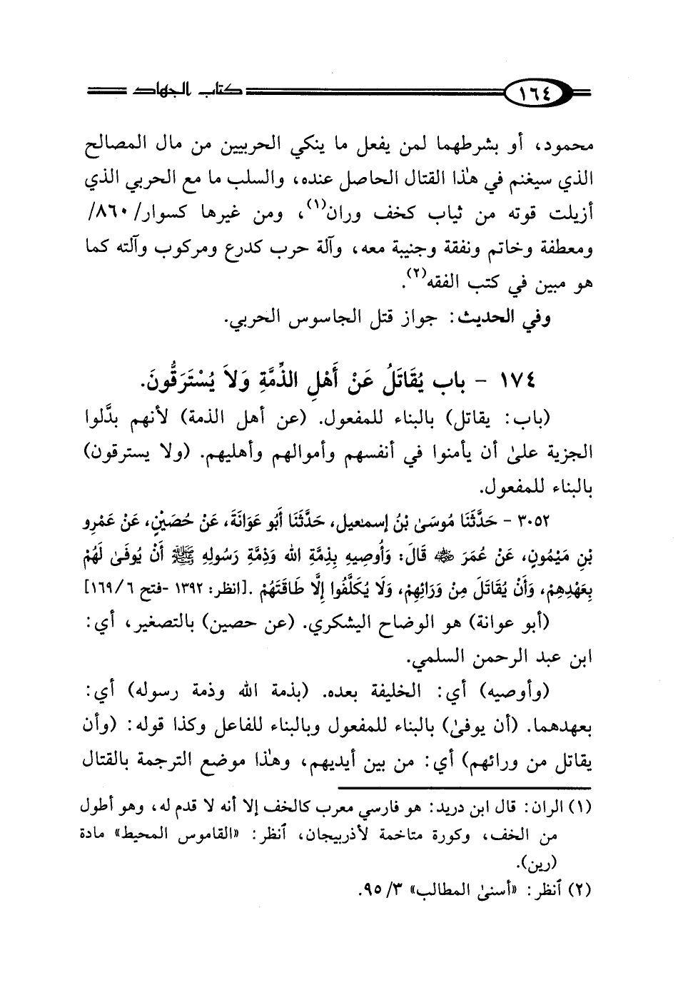 174 - بَابٌ: يُقَاتَلُ عَنْ أَهْلِ الذِّمَّةِ وَلَا يُسْتَرَقُّونَ