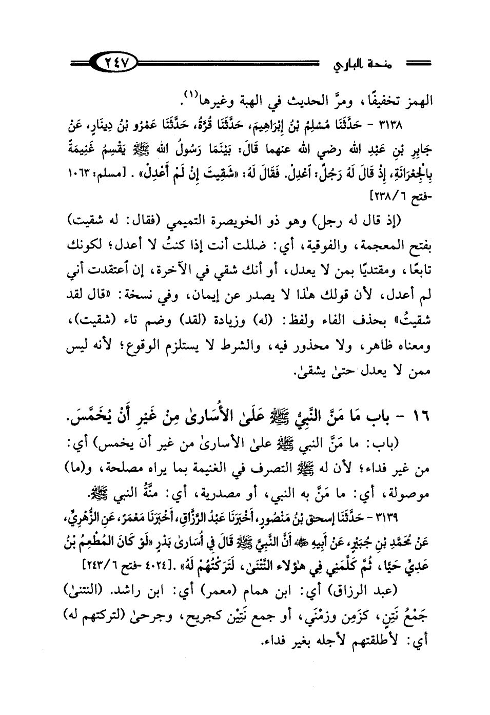 16 - بَابُ مَا مَنَّ النَّبِيُّ صَلَّى اللهُ عَلَيْهِ وَسَلَّمَ عَلَى الأُسَارَى مِنْ غَيْرِ أَنْ يُخَمِّسَ