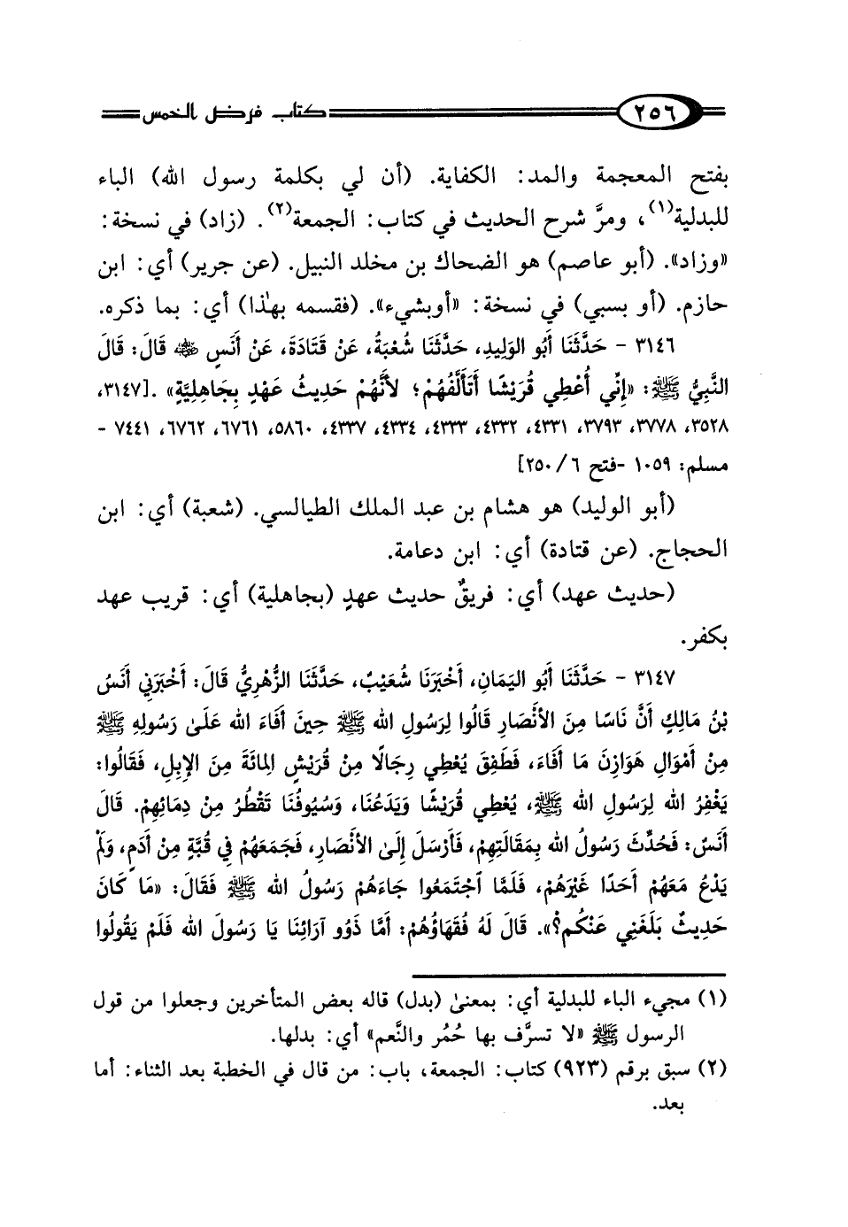 3146 - حَدَّثَنَا أَبُو الوَلِيدِ، حَدَّثَنَا شُعْبَةُ، عَنْ قَتَادَةَ، عَنْ أَنَسٍ رَضِيَ اللَّهُ عَنْهُ، قَال: قَال النَّبِيُّ صَلَّى اللهُ عَلَيْهِ وَسَلَّمَ: "إِنِّي أُعْطِي قُرَيْشًا أَتَأَلَّفُهُمْ، لِأَنَّهُمْ حَدِيثُ عَهْدٍ بِجَاهِلِيَّةٍ".