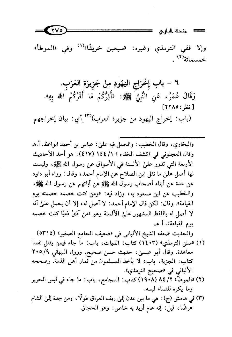 6 - بَابُ إِخْرَاجِ اليَهُودِ مِنْ جَزِيرَةِ العَرَبِ