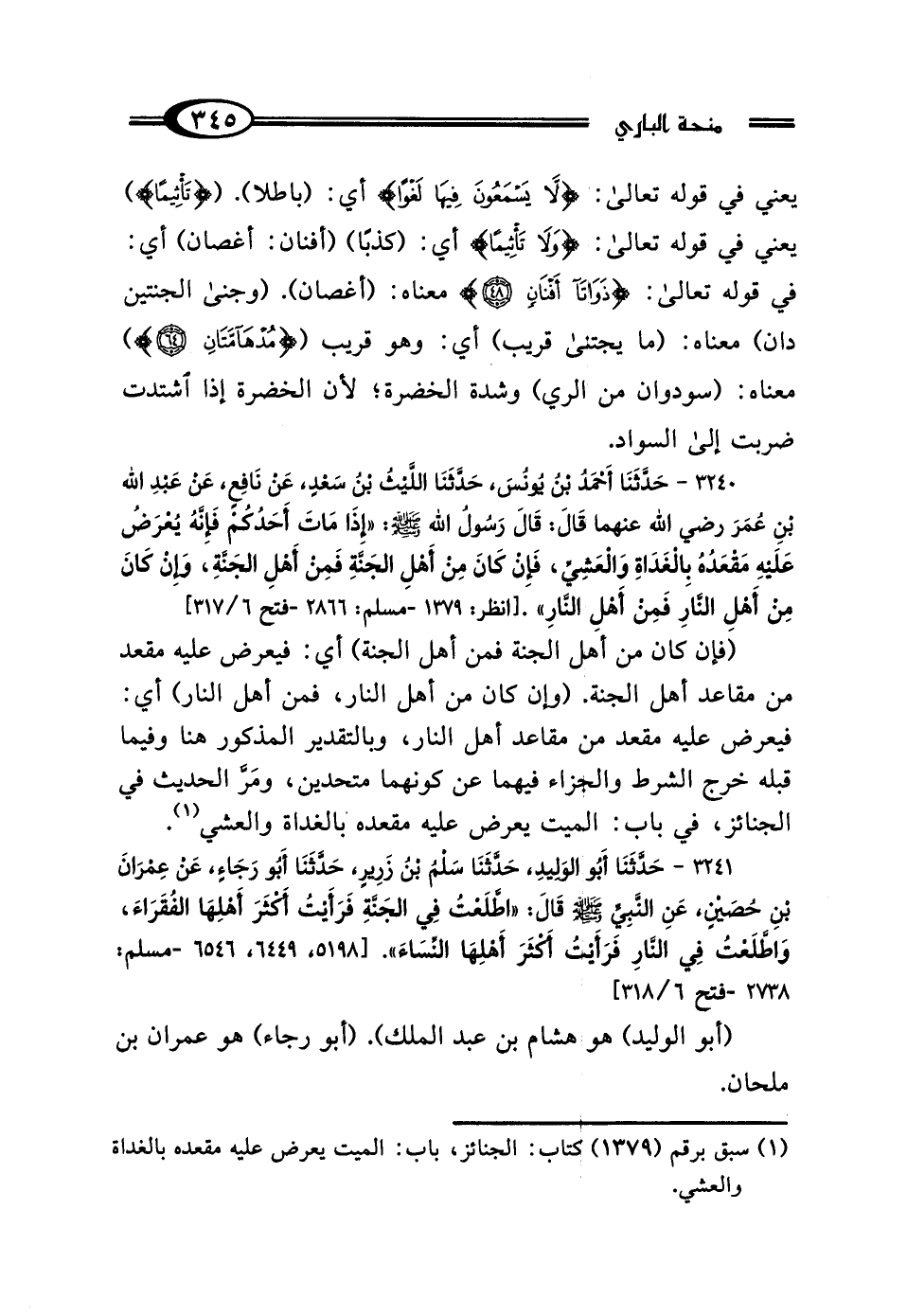 (¬1) سبق برقم (1379) كتاب: الجنائز، باب: الميت يعرض عليه مقعده بالغداة والعشي.