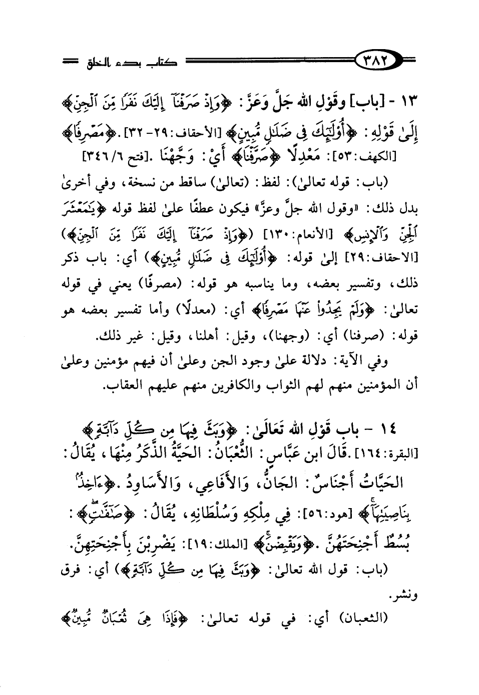 13 - [باب] قَوْلِهِ جَلَّ وَعَزَّ: {وَإِذْ صَرَفْنَا إِلَيْكَ نَفَرًا مِنَ الجِنِّ} [الأحقاف: 29]- إِلَى قَوْلِهِ - {أُولَئِكَ فِي ضَلالٍ مُبِينٍ} [الأحقاف: 29 - 32].