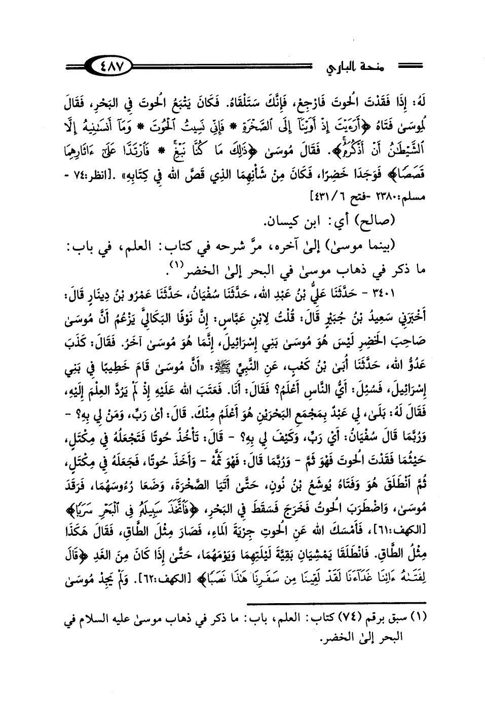 (¬1) سبق برقم (74) كتاب: العلم، باب: ما ذكر في ذهاب موسى - عليه السلام - في البحر إلى الخضر.