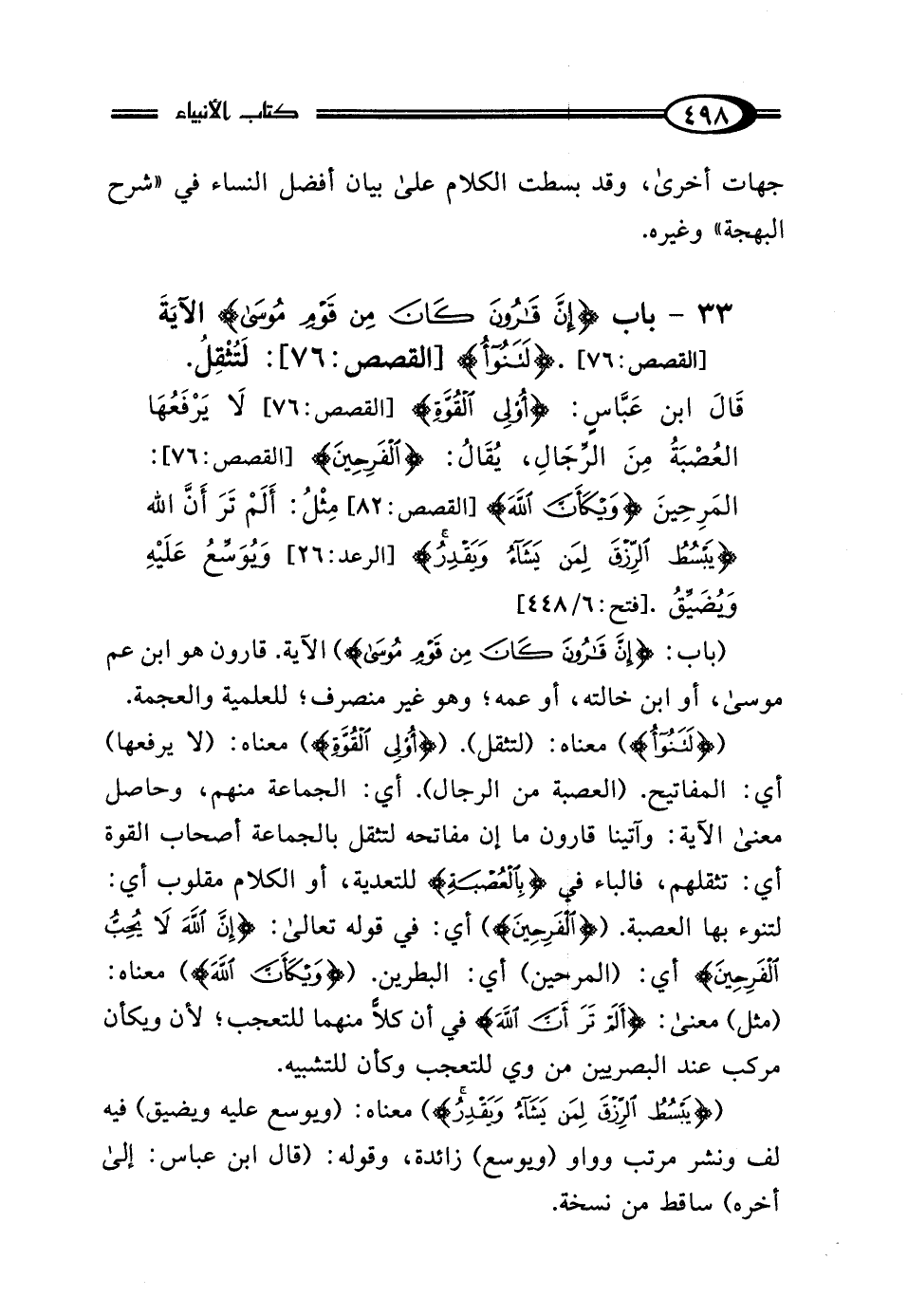 33 - باب {إِنَّ قَارُونَ كَانَ مِنْ قَوْمِ مُوسَى} الآيَةَ [القصص: 76]